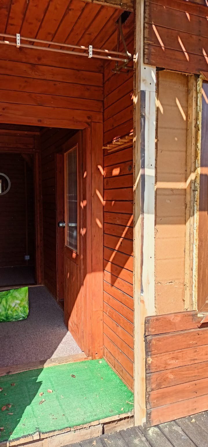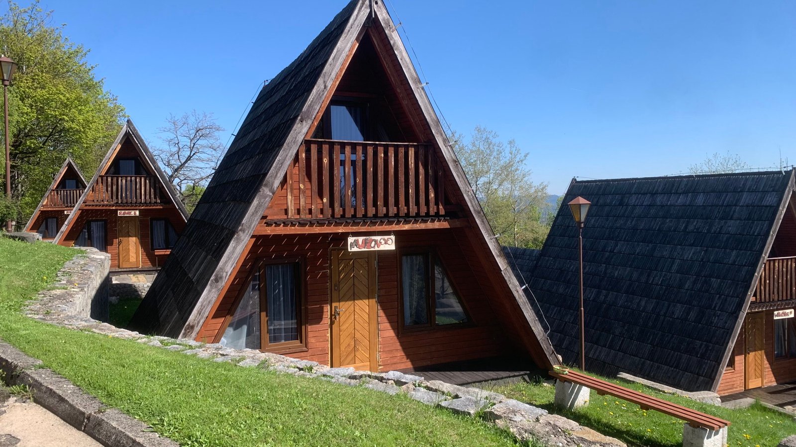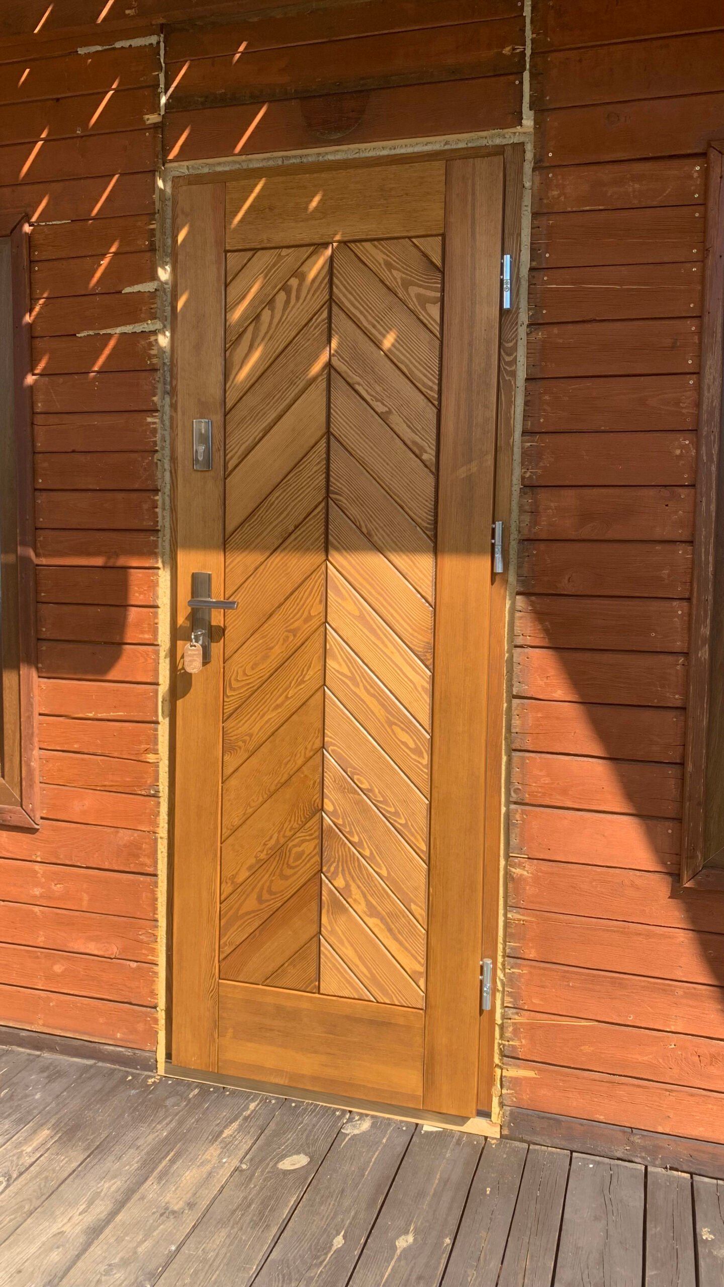 Gdzie nastrój ten bierze początek? W pierwszym już kontakcie z nowym miejscem, czyli kwaterą – dlatego też sezon 2025 rozpoczęliśmy od wymiany drzwi wejściowych we wszystkich naszych domkach. Ci, którzy już gościli w naszym ośrodku zapewne pamiętają, jak leciwe i wysłużone były poprzednie drzwi; nowe zaś, poza zmienionym rozmiarem (są wyższe), idealnym dopasowaniem i izolacją, wspaniale komponują się wzorem z samym kształtem domków, a będąc drewnianymi z jego ogólnym charakterem.