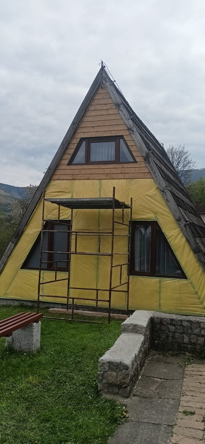 Następne w planach są elewacje frontowe, które to już niebawem będziemy kłaść na domkach, wraz z dodatkowym ociepleniem – może to i zbędne (pamiętając Wasze wrażenia z komfortu nawet zimą), ale też nie zaszkodzi. Bądźcie więc na bieżąco, zaglądając do nas często śledząc, co i jak robimy by było jeszcze milej i wygodniej dla Was.